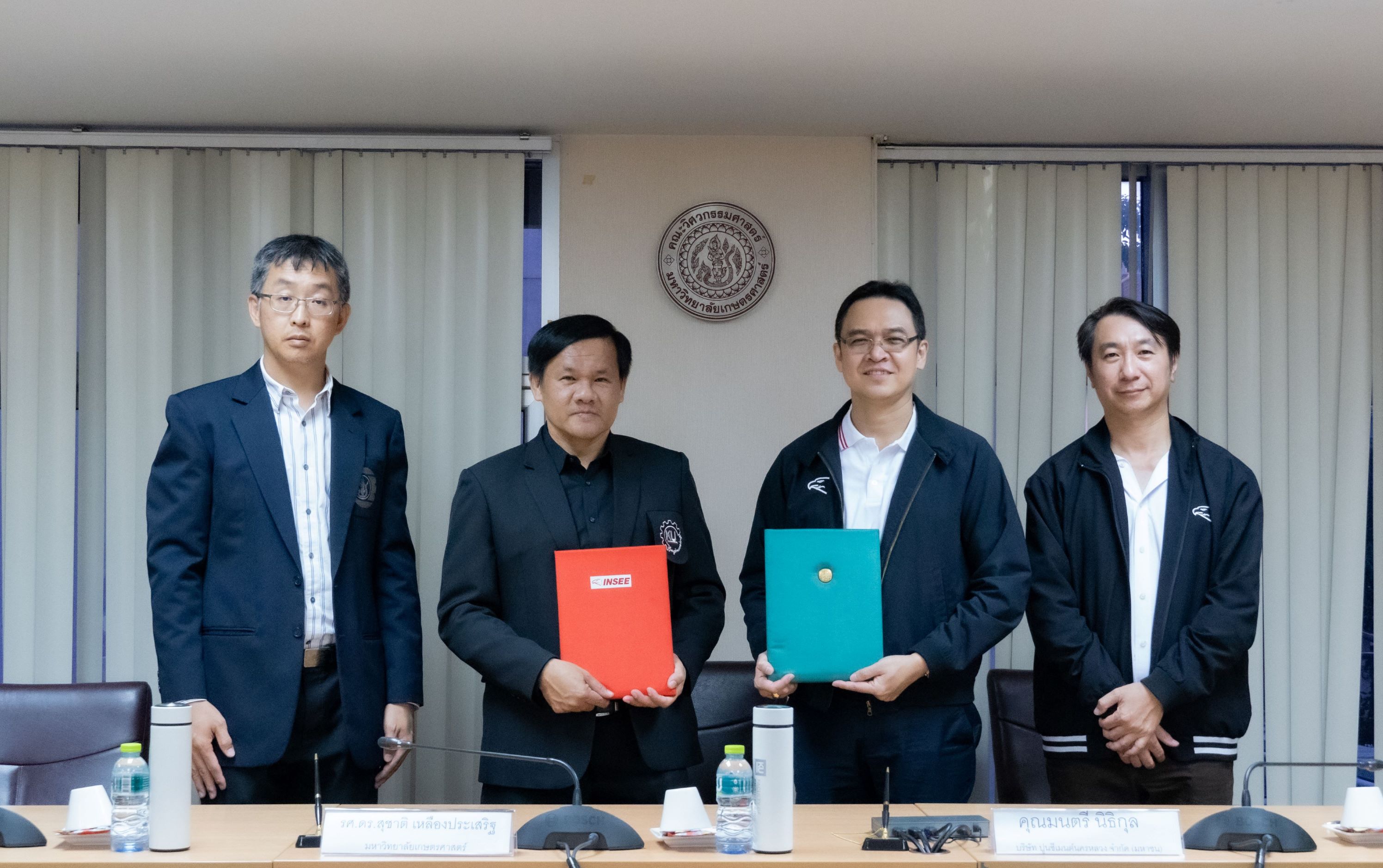 Mr. Montri Nithikul, CEO of Thailand Cement Business at Siam Cement Public Company Limited (SCCC) (3rd from left) and Mr. Vorawin Phadungmoungtong, Head of RMX Production and Technical Support at Siam City Concrete Company Limited (4th from left), signed a Memorandum of Understanding with Kasetsart University’s Faculty of Engineering. Representing the faculty were Assoc.Prof.Dr. Suchart Luengprasert, Vice Dean for Management, Faculty of Engineering (2nd from left) and Asst.Prof.Dr. Rangsan Wongjeeraphat, Civil Engineering, Faculty of Engineering (1st from left). The MoU will support education, real life work opportunities for students, training and the development of faculty spaces.