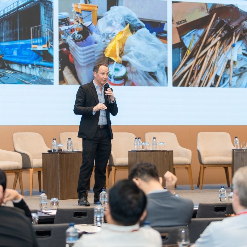 In his presentation, Mr. Fux shared how INSEE Ecocycle leverages co-processing technology to convert non-recyclable industrial waste into alternative fuels, offering a practical and scalable pathway to reduce landfill dependency and lower greenhouse gas emissions. By integrating waste management into the cement manufacturing process, INSEE Ecocycle not only mitigates environmental impact but also supports industries in achieving their sustainability targets.