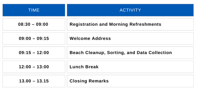 Please note that accommodation and transportation will not be provided for this beach cleanup event. Participants are responsible for arranging their own lodging and transportation