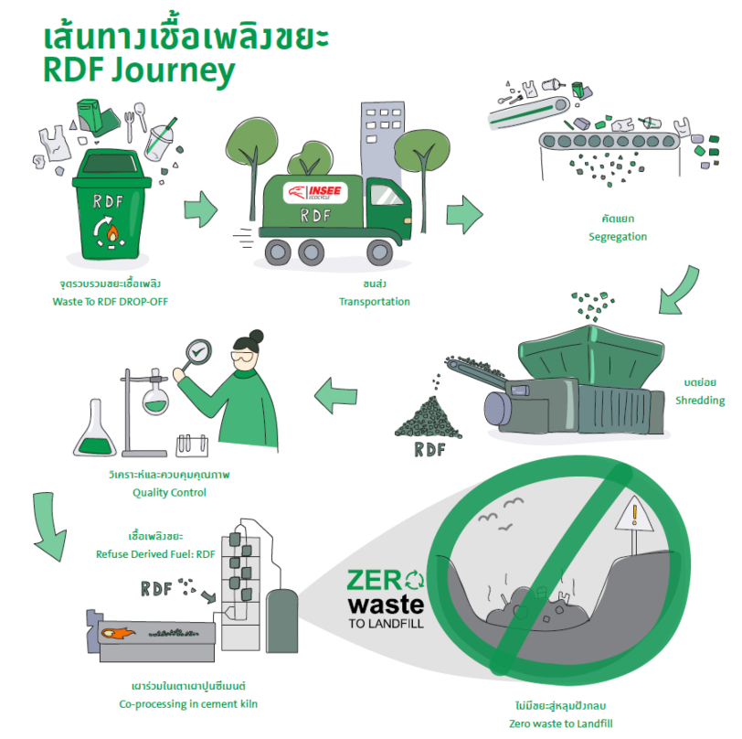 INSEE Ecocycle is collaborating with partners to increase participation in the RDF Drop-off program. One example of this in action is a partnership with Bank of Ayudhya (Krungsri). Two of the bank’s offices have set up RDF drop-off points. A focus was placed on education with office maids trained on how to monitor and segregate waste in order to ensure successful implementation. The result means harmful materials are prevented from ever entering the ecosystem once disposed of.